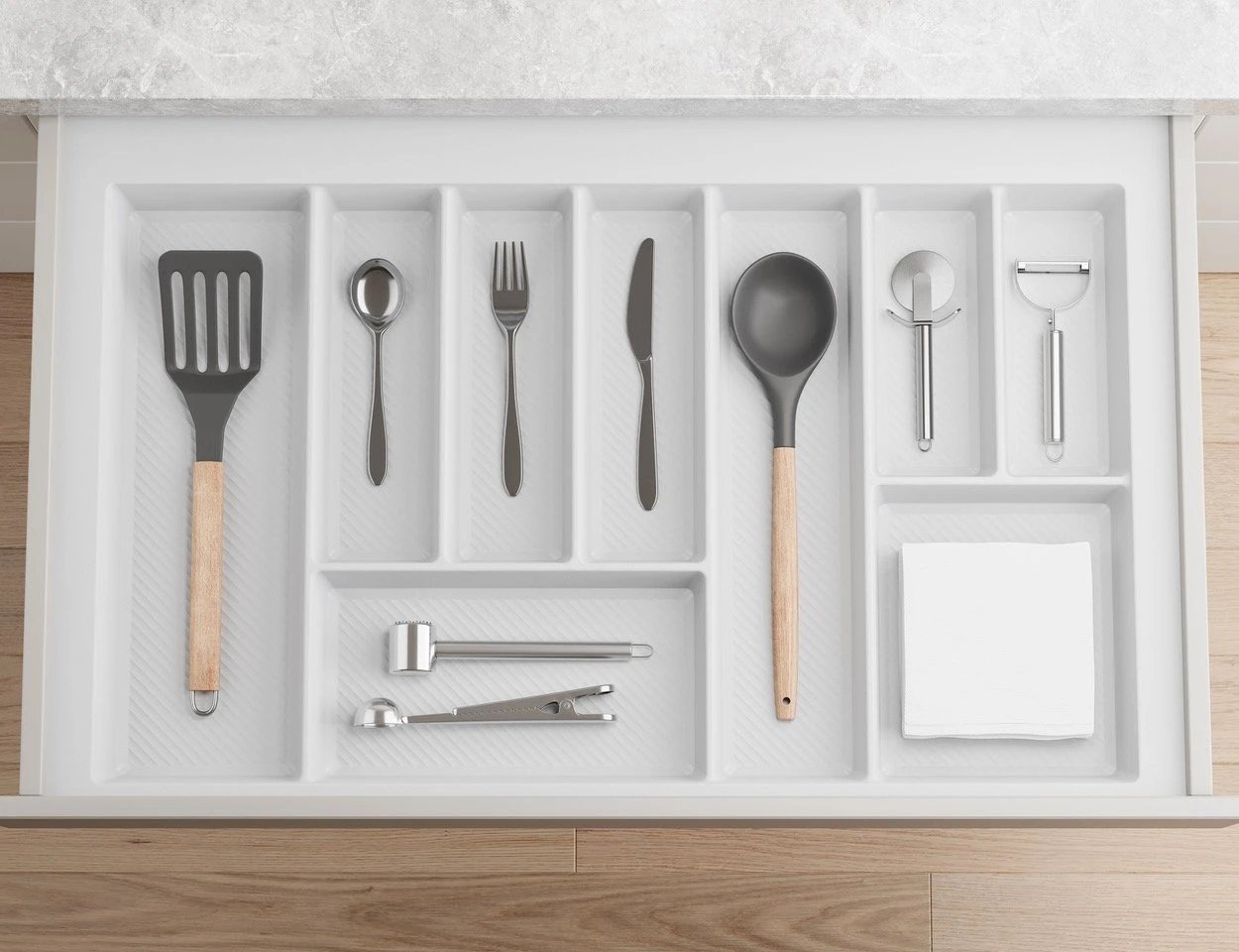 Díky dostatočně širokým okrajům vyplníte každou zásuvku až do šířky 900mm. Stačí si změřit vnitřní rozměr zásuvky a okraje odřezat podle vašich požadavků.