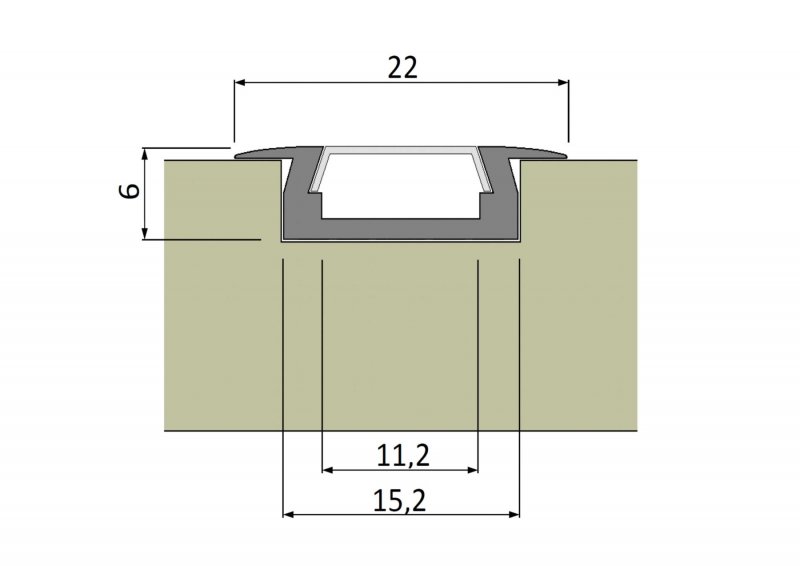 Hloubka montážního otvoru je 15,2x6mm + celková délka vybrané části profilu.
