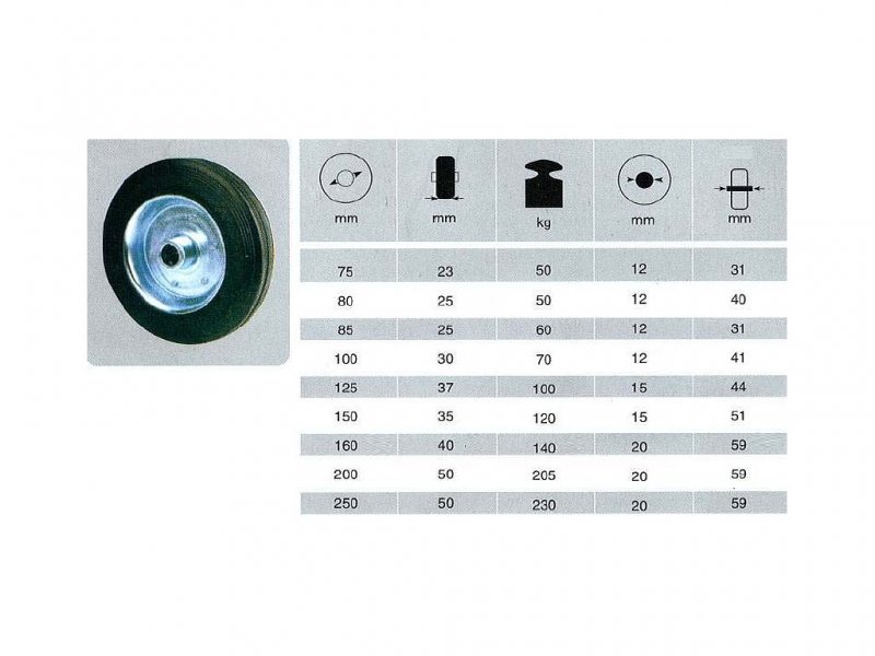 Průmyslové kolečko zátěžové gumové pr.200mm samostatné s ložiskem