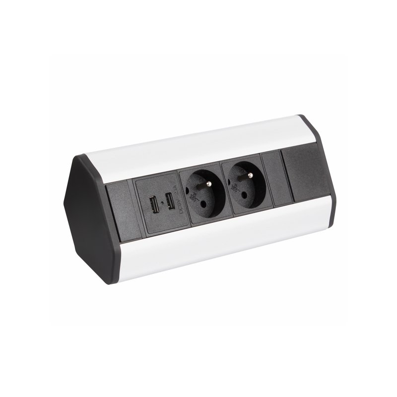 CORNER BOX je vybaven 2 funkčními zásuvkami se zemnícími kolíky, které zaručují bezpečnost a komfort používání. Jsou určeny pro běžné spotřebiče a maximální proudové zatížení je 16A. 2x výstup USB 5C DC/2,4A.