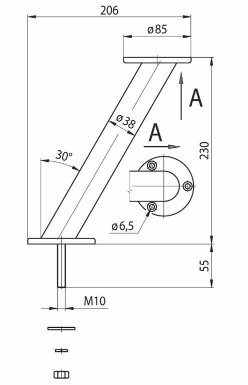 Rovnoběžná podpěra barového pultu 38/230mm chrom