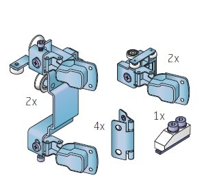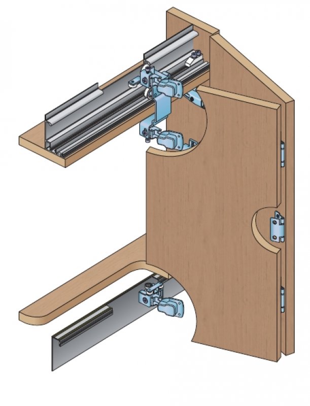 S40SD je kování pro skládací dveře s horním zavěšením a uchycením na bok korpusu. Je určeno zejména pro vysoké a těžké skládané dveře, uplatňuje se proto ideálně v ložnicovém i jiném nábytku. Diky zachování tzv. „čisté linie“ umožňuje montáž pojezdových lišt mimo užitný prostor skříně.