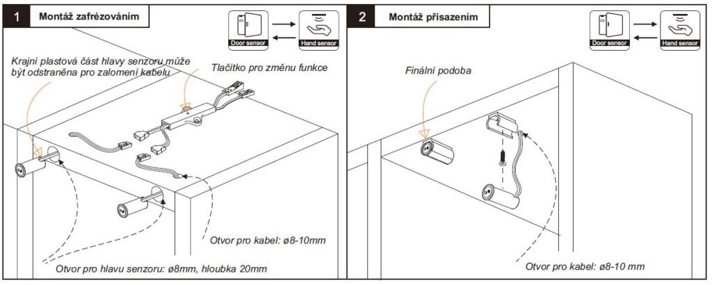 Skládá se z čidla a řídící jednotky. Pomocí tlačítka je možné přepínat mezi funkcemi - IR senzor dveřní nebo IR senzor na mávnutí.