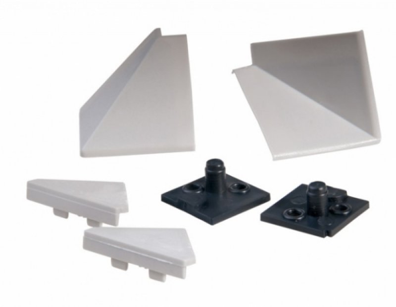 set elementů k těsnící profil L230 - nerez lesklý tvarovky k rohovému napojení a ukončení těsnícího profilu set obsahuje: 2ks koncovka, 1ks roh vnitřní, 1ks roh vnější barva: sv. šedá, tm. šedá, nerez lesk