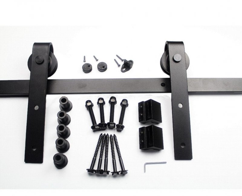 set pro dřevěné dveře, s tlumením, černá plochá tyč, délka 2m