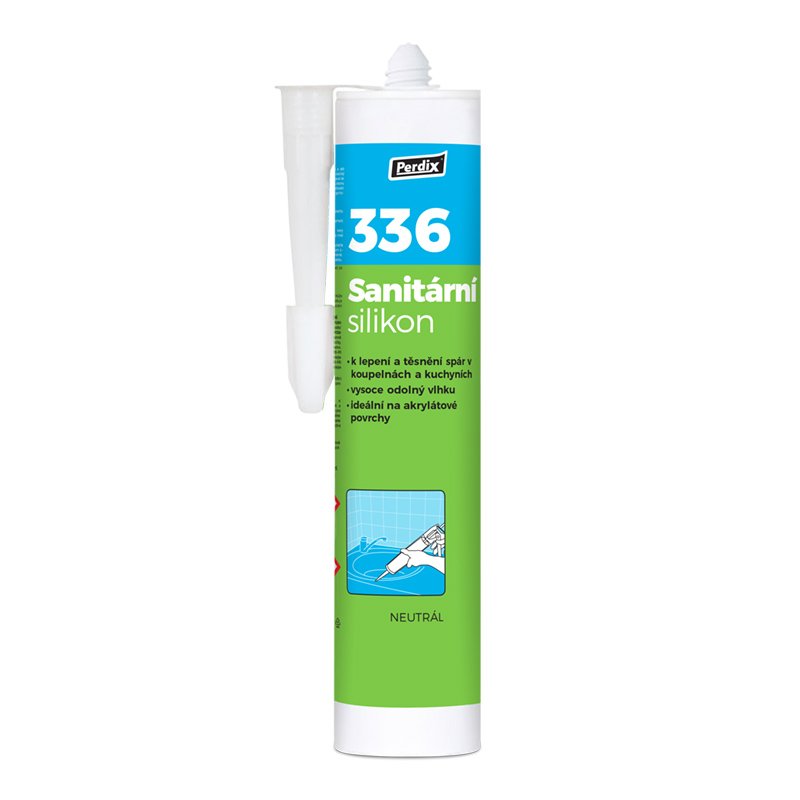 Perdix – 336 Sanitární silikon neutrál je jednosložkový neutrální silikonový tmel. Je elastický a jednoduše se nanáší. Má vynikající přilnavost ke sklu, keramice, kovům, oceli, hliníku, zdivu, betonu a většině plastů.