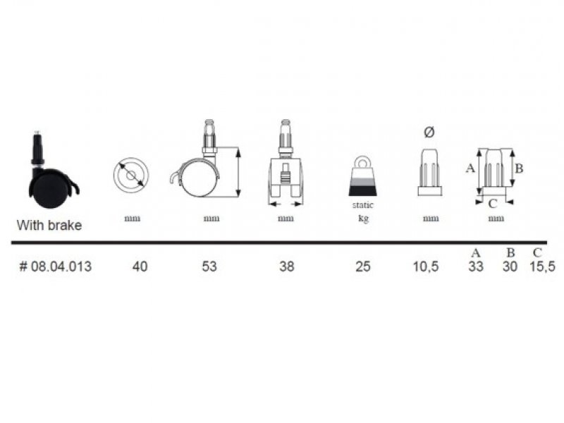 SISO-Nábytkové dvojité kolečko 40 mm otočné s čepem a brzdou
