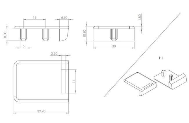 Protiplech pro zámek na jedno sklo slouží k zamykání křídla dveří, když dveře jsou zároveň s hranou korpusu.