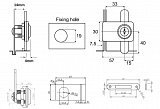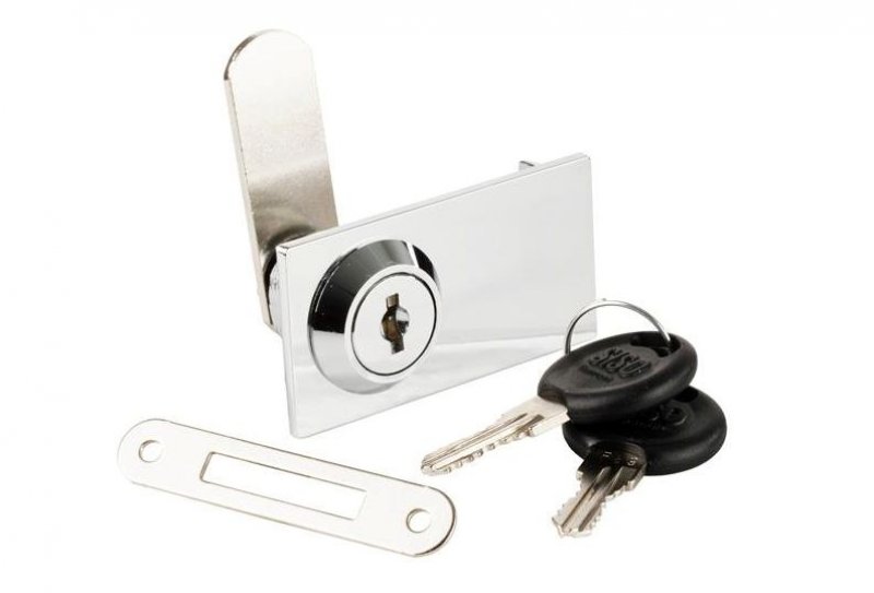 Zámek slouží k uzamykání dvou skleněných křídel do půdy nebo dna korpusu. Nutno vrtat otvor do skla.