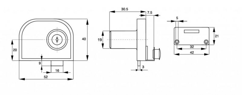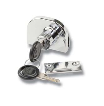 Zámek slouží k uzamykání dvou křídel skleněných dveří do půdy nebo dna korpusu bez nutnosti vrtání otvoru do skla.