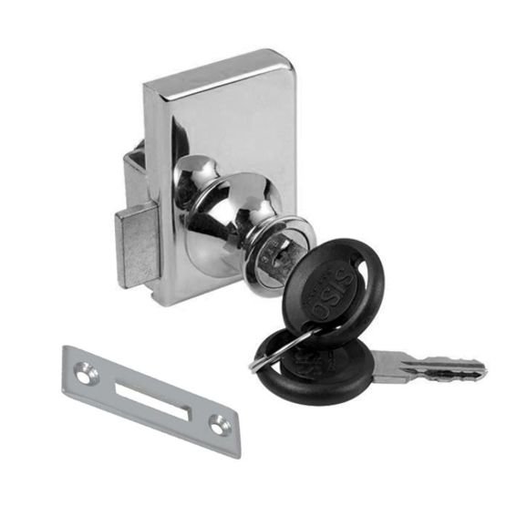 Zámek slouží k uzamykání dvou křídel skleněných dveří bez nutnosti vrtání otvoru do skla.