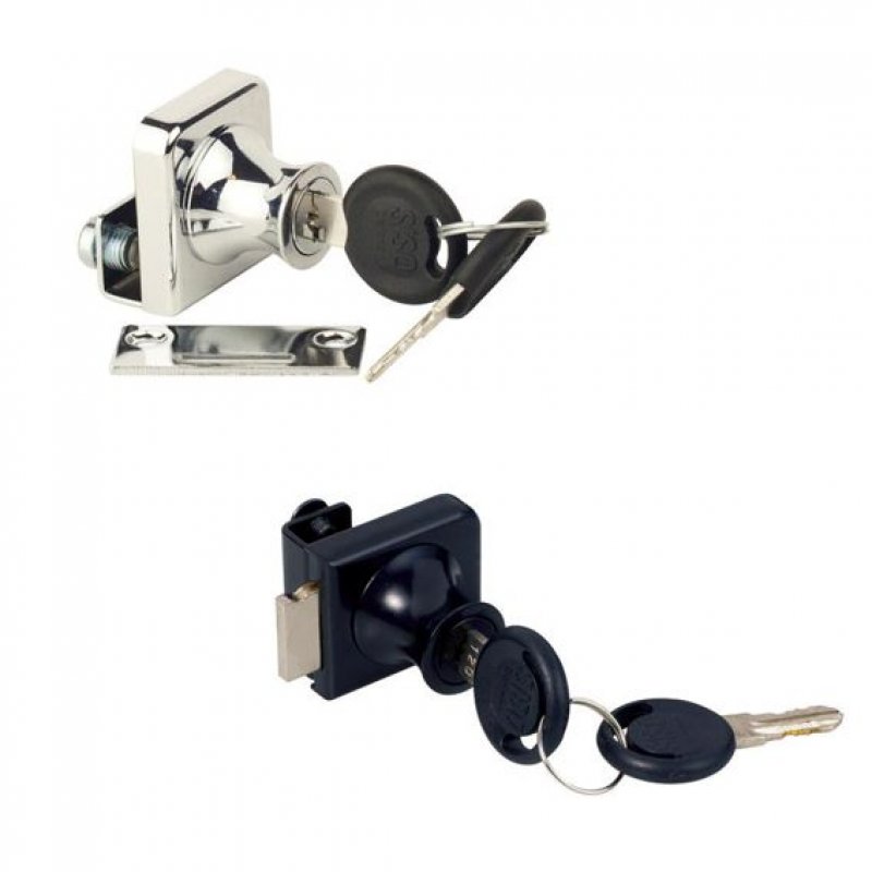 Zámek slouží k uzamykání jednoho křídla skleněných dveří bez nutnosti vrtání otvoru do skla.