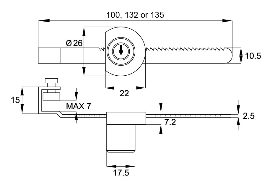 SISO zámek na posuvné sklo 750/100 Cr hřebínkový