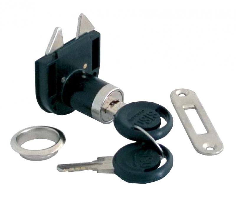 Nábytkový zámek využívaný k zamykání roletových (žaluziových) dveří v horizontální i vertikální poloze.