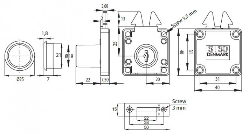 SISO zámek roletový 855 22mm chrom stejný klíč