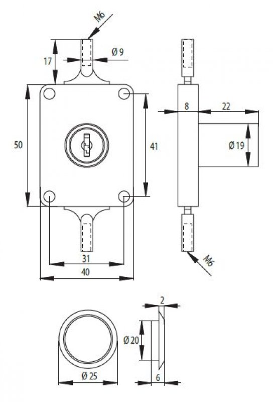 zámek, rozeta, 2ks klíče, 4ks vodítko tyče, 2ks zarážka