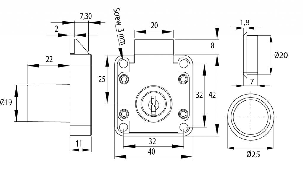 Zámek vhodný hlavně pro hotelové minibary, příruční pokladny apod.Využítí