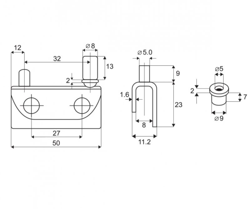 Závěs je určen pro skleněné vložené dveře bez nutnosti vrtání otvoru do skla a je dodáván v párech (horní a spodní). Možnost použití zátlačné kuličky pro fixaci v nulové poloze. Zátlačná kulička není součástí balení a je nutno ji objednat zvlášť.