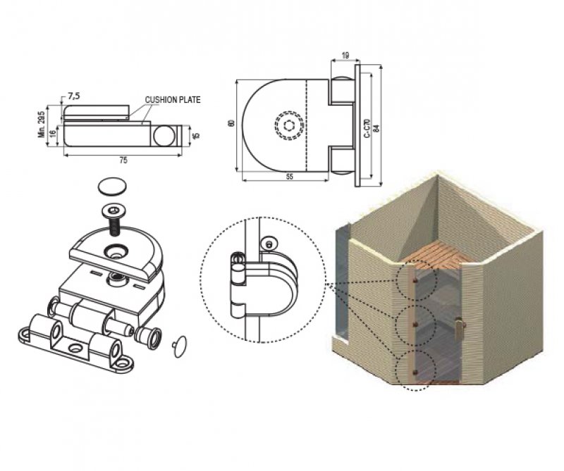 SISO Závěs pro saunové dveře typ Slovakia Cr mat