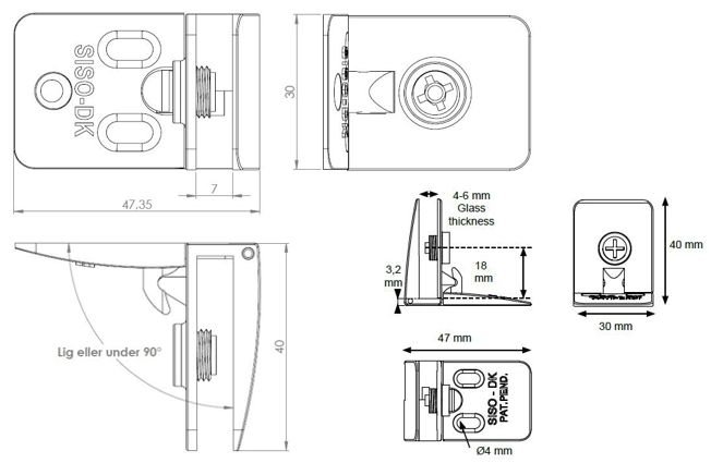 Středový závěs na sklo Square Al Závěs na sklo slouží jako přídavný závěs pro větší rozměry skleněných dveří. Použití je pro vložené skleněné dveře bez nutnosti vrtání do skla. V případě požadavku vrtání do skla jsou součástí balení přídavné šrouby s čepem o5mm, které rovněž slouží k uchycení závěsu za pomocí otvoru ve skle. Využítí tloušťka skla 4-6mm, max. velikost skleněných dveří 1000x400mm Obsah balení 1ks závěs, 1ks upevňovací šroub, 1ks upevňovací šroub s čepem