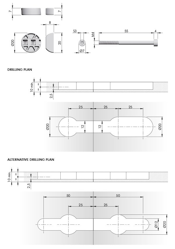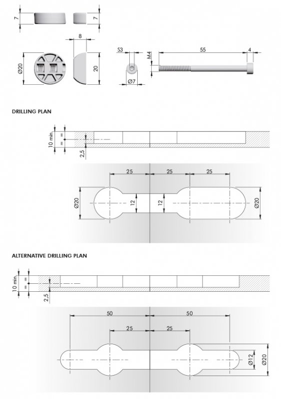 spojovací šroub na pracovní desky KOMPAKT tl. 10mm M4x060mm