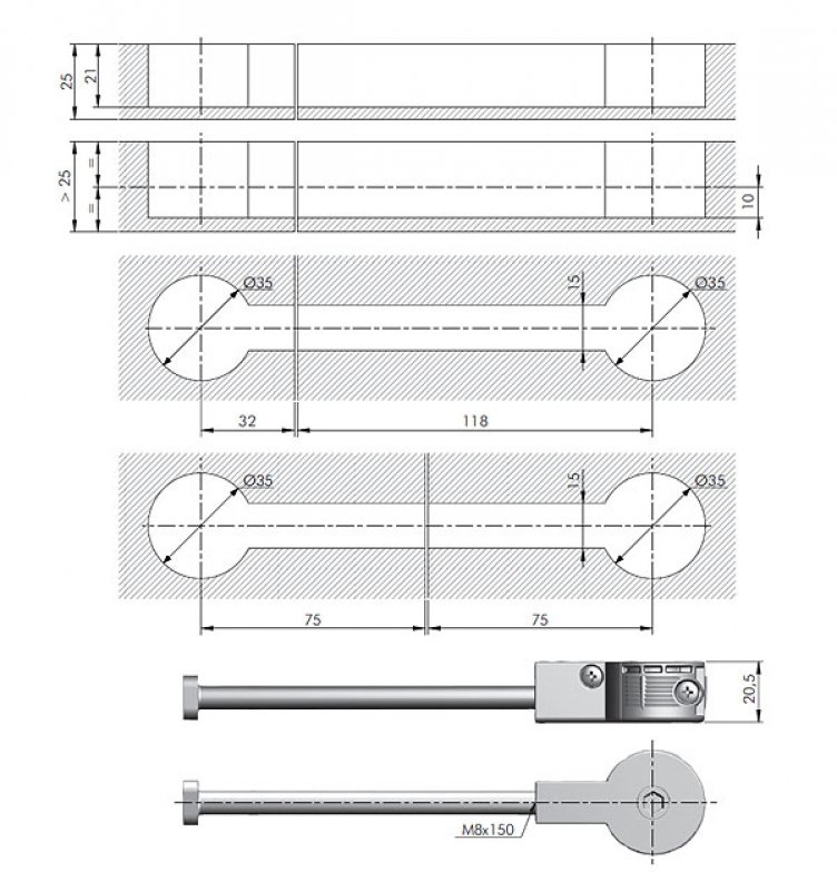 spojovací šroub na pracovní desky TOP QUICK 35x150mm