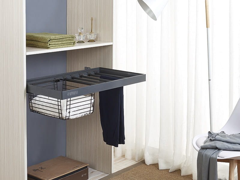 SYMPHONY Výsuvný věšák na kalhoty s košem WB-663-900 P1 - BÍLÝ