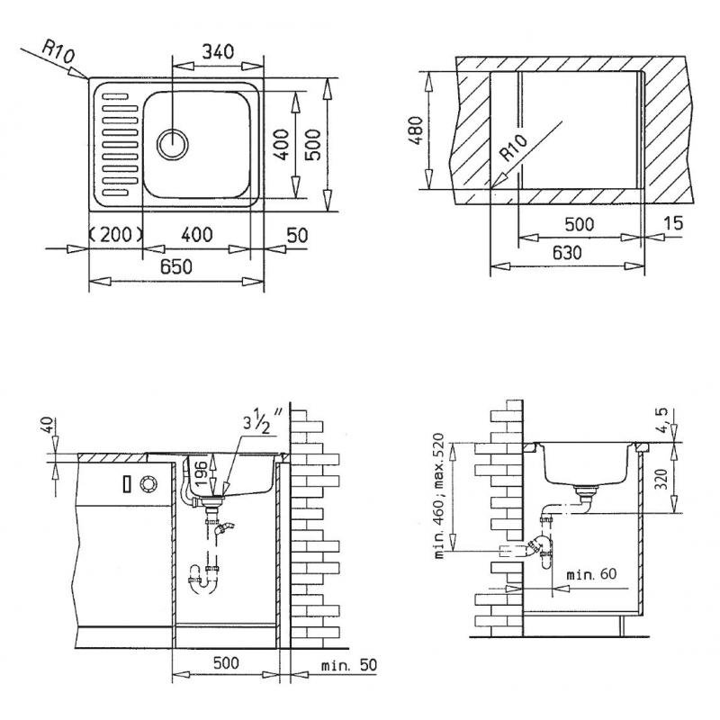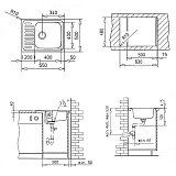 Vnejší rozměr: 650x500 mm, výřez 630x480 mm, rozměr vaničky: 400x400/196 mm