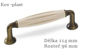 Délka: 114 mm, Rozteč: 96 mm, Povrch: staromosaz brinýr kartáčovaný / plast béžovySoučást balení: 2x M4 šrouby
