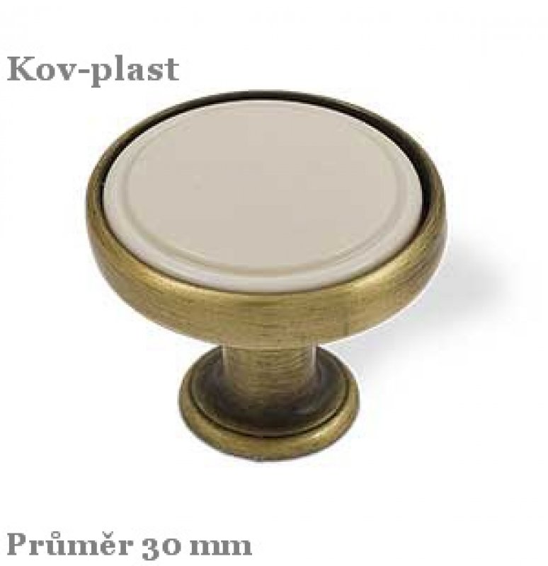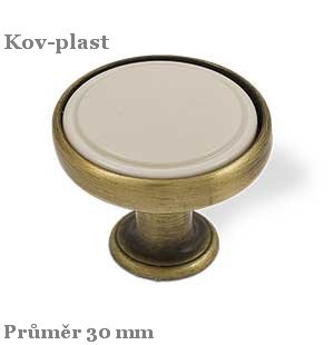 úchytka 1971-30 ZN31A78 staromosaz brinýr kartáčovaný / plast béžovy