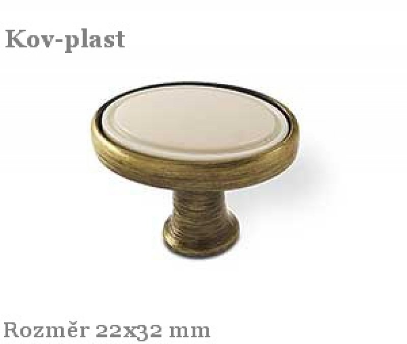 úchytka 1972-32 ZN31A78 staromosaz brinýr kartáčovaný / plast béžovy