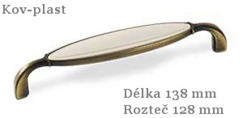 Délka: 138 mm, Rozteč: 128 mm, Povrch: staromosaz brinýr kartáčovaný / plast béžovy