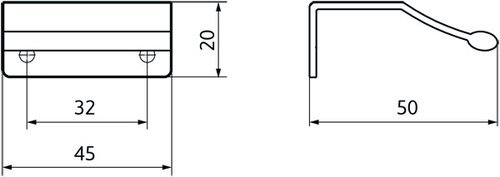 Délka: 45 mm, Rozteč:32 mm, Povrch: ALU efekt