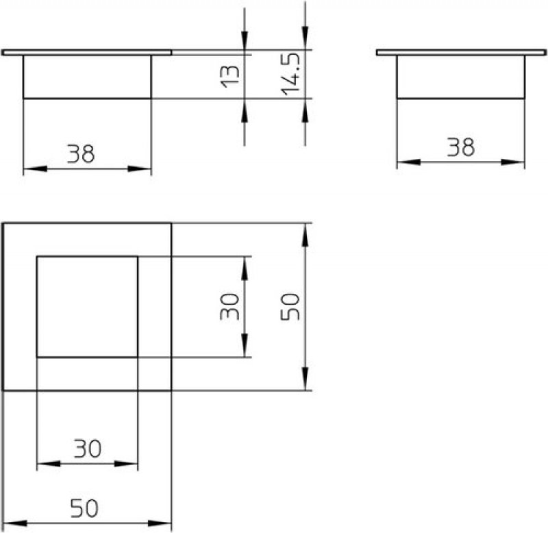 Kovová mušle - zápustnáDélka: 150 mm, Šířka: 51 mm, Hloubka: 10 mm, Povrch: nerez