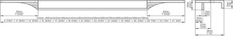 Tato profilová úchytka se zapouští z vrchu do hrany dvířek do výfrezu o šířce 3mm. Úchytka se volí přesně dlé velikosti dvířek a je dostupná v těchto délkách: 245, 295, 345, 395, 445, 495, 545, 595, 695, 795, 895, 995, 1095 a 1195 mm. Některé velikosti vedeme pouze jako objednávkové s termínem dodání do 14-ti dnů.>