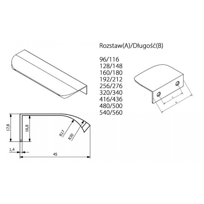 Moderní hranová úchytka UA02 dodá vašemu nábytku styl díky jeho módnímu tvaru.