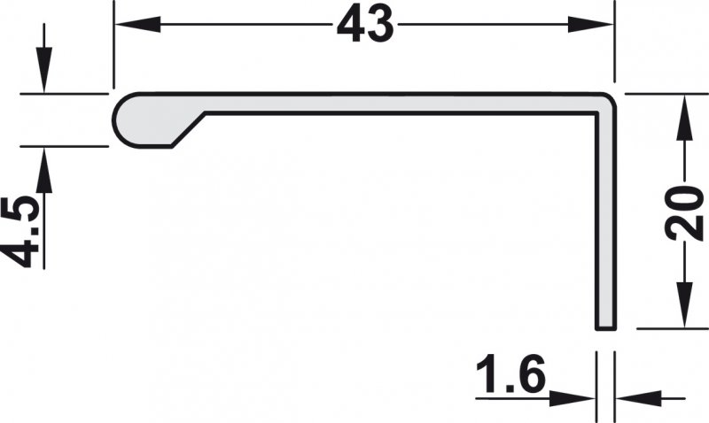 Úchytkový profil, Hliník, L 43x20x2500mm, nerez