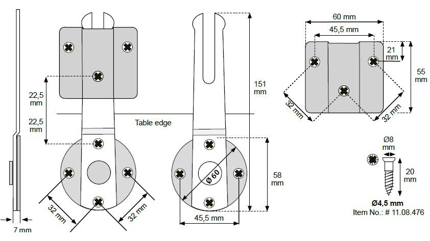 Spojovací kování pro stolové desky Click catch Click catch je určen pro rozebíratelné spojení více stolů za sebou.