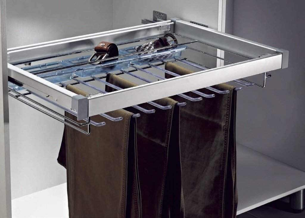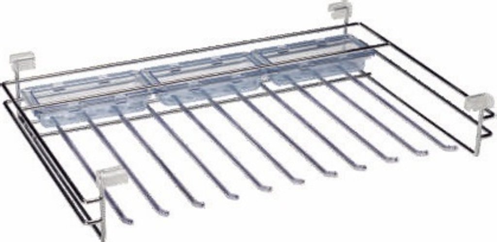 Věšák na klahoty - 9 ramen, 2 plastové misky, 585x427x110 mm, chrom