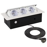 Zajišťuje rychlý a komfortní přístup k zásuvkám a zároveň v uzavřené poloze šetří cenné pracovní místo. Montáž se provádí do pracovní desky a v případě potřeby použití stačí zmáčknout tlačítko a zásuvky se vyklopí do pohotovostní polohy. KOMBI BOX je vybaven 3 funkčními zásuvkami se zemnícími kolíky, které zaručují bezpečnost a komfort používání. Jsou určeny pro běžné spotřebiče a maximální proudové zatížení je 16A.