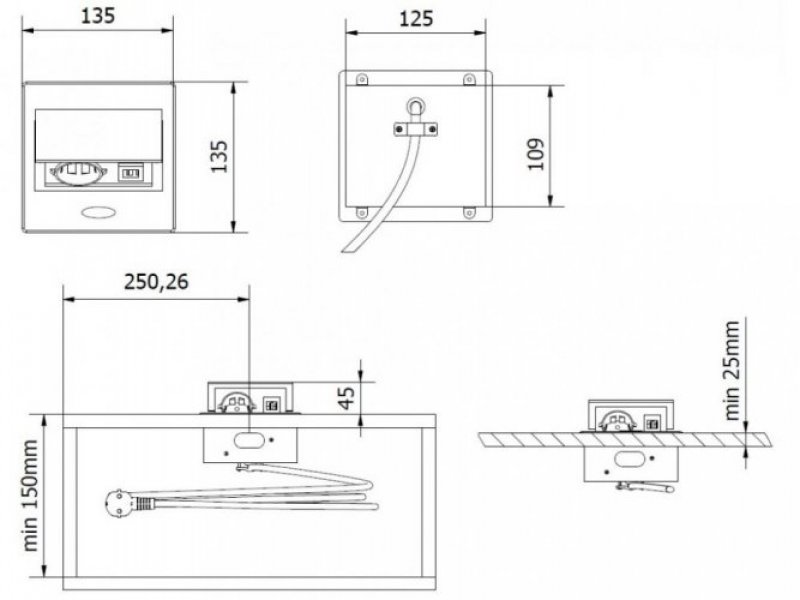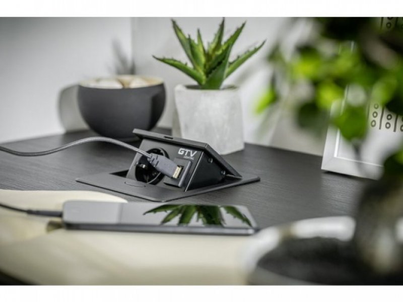Zásuvkový výklopný blok malých rozměrů s povrchem desky z hliníku umožňuje schovat zásuvky a kabely pod desku stolu. Díky tomu je snadný přístup ke konektorům, ale zároveň je to dobré zabezpečení, pokud jsou přítomny malé děti. Výrobek má jednu zásuvku typu E (french - česká) s maximálním příkonem 3500W / 16A a dva USB konektory typu A ( 5V/2A) pro nabíjení telefonů, tabletů a dalších elektronických zařízení. Tento moderní zásuvkový blok v bílé barvě skvěle zapadne do pracovní desky ve Vaší kuchyni, ale hodí se i do kancelářských či konferenčních prostor.