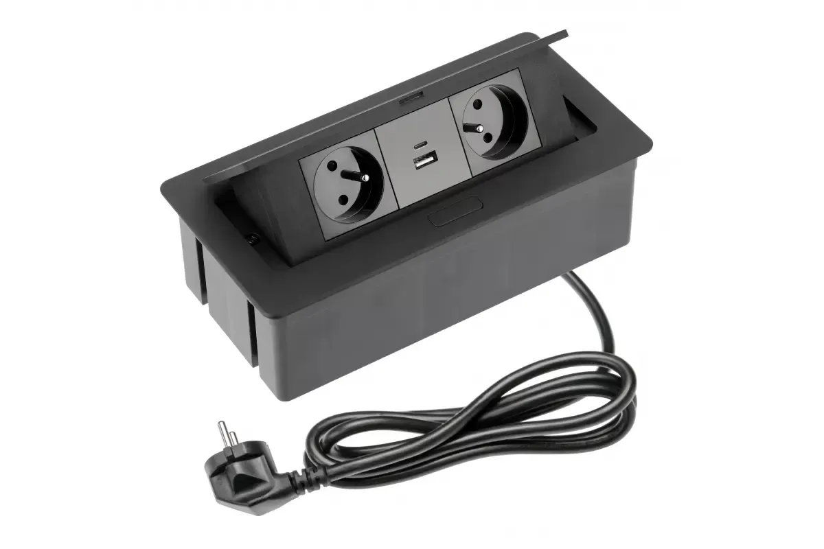 Výklopná zásuvka SOFT 2x230V, USB A+C, ČERNÁ