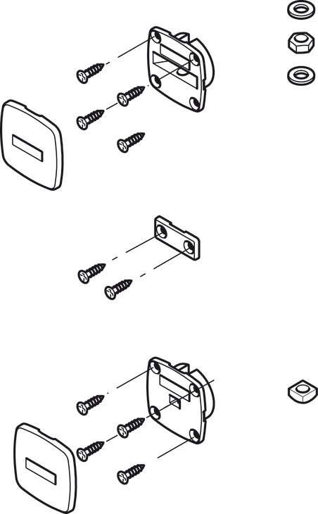 Obsah sady: 2 x napínače, 1 x šestihranná matice, 2 x pojistné podložky, 1 x čtyřhranná matice, 2 x krytky pro napínače, 4 x přídržné desky