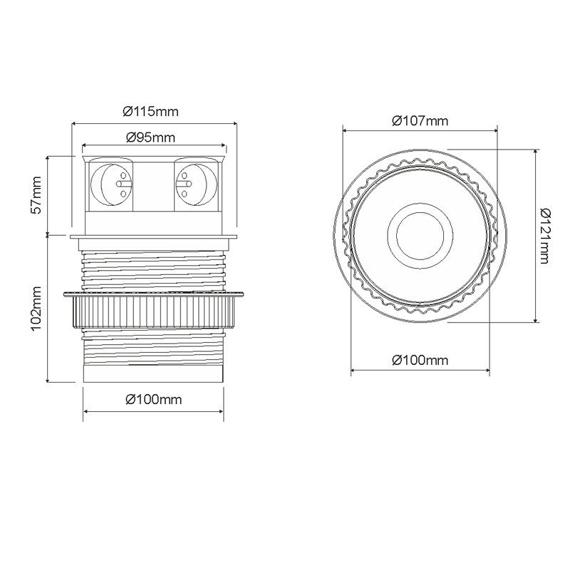 Sada tří síťových zásuvek s uzemňovacími a proudovými membránami a dvěma zásuvkami USB v krytu skrytém v horní části. Zařízení je určeno k instalaci na konferenční stoly, desky kancelářského a kuchyňského nábytku. Přesný mechanismus po stisknutí krytu automaticky vysune panel se zásuvkami. K montáži zařízení na desku stolu potřebujete pouze otvor o průměru pouhých 10 cm a hloubce pouze 10,2 cm. Vybaveno kabelem 1,4 m. Plast + hliník. Prodlužovací kabel má: - 3 zásuvky 230V AC se po mírném stisknutí krytu prodlouží nahoru - 2 USB zásuvky (2X 5V DC 2,4 A) - navíc kabel o délce 1,4 m se zástrčkou, který vám umožní snadné připojení zařízení mimo zásuvky. Praktická kombinace s napájením 230V AC!