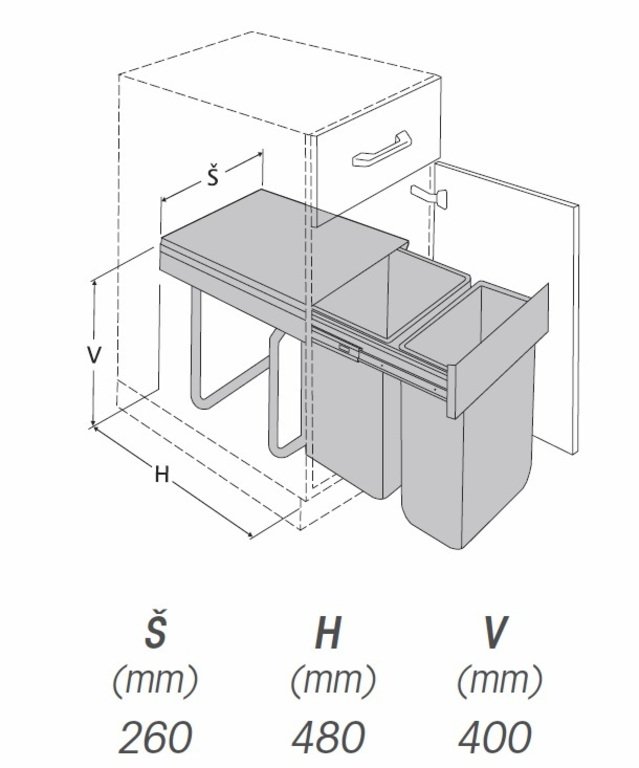 Výsuvný odpadkový 2-koš, 1x20 l + 1x10 l, K30-šedý plast