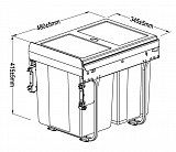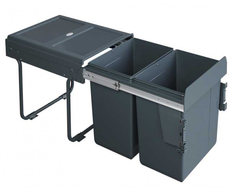Výsuvný odpadkový 2-koš 2x20 l + set pro úchycení dvířek, antracit, plast 40cm