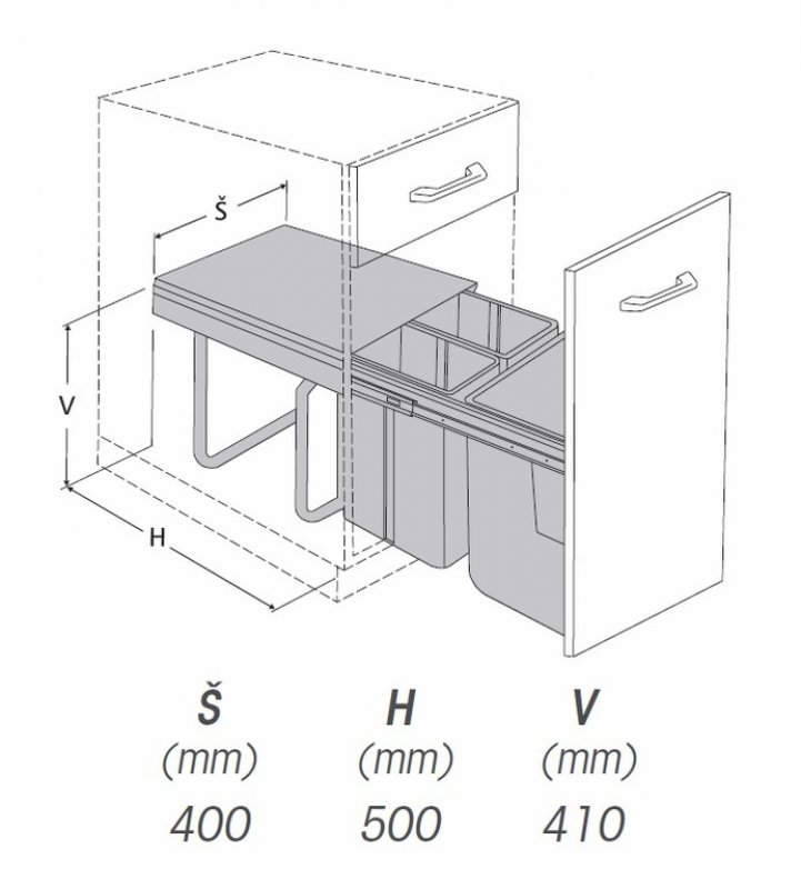 Výsuvný odpadkový 3-koš 1x20l+2x10l,K45-šedý plast