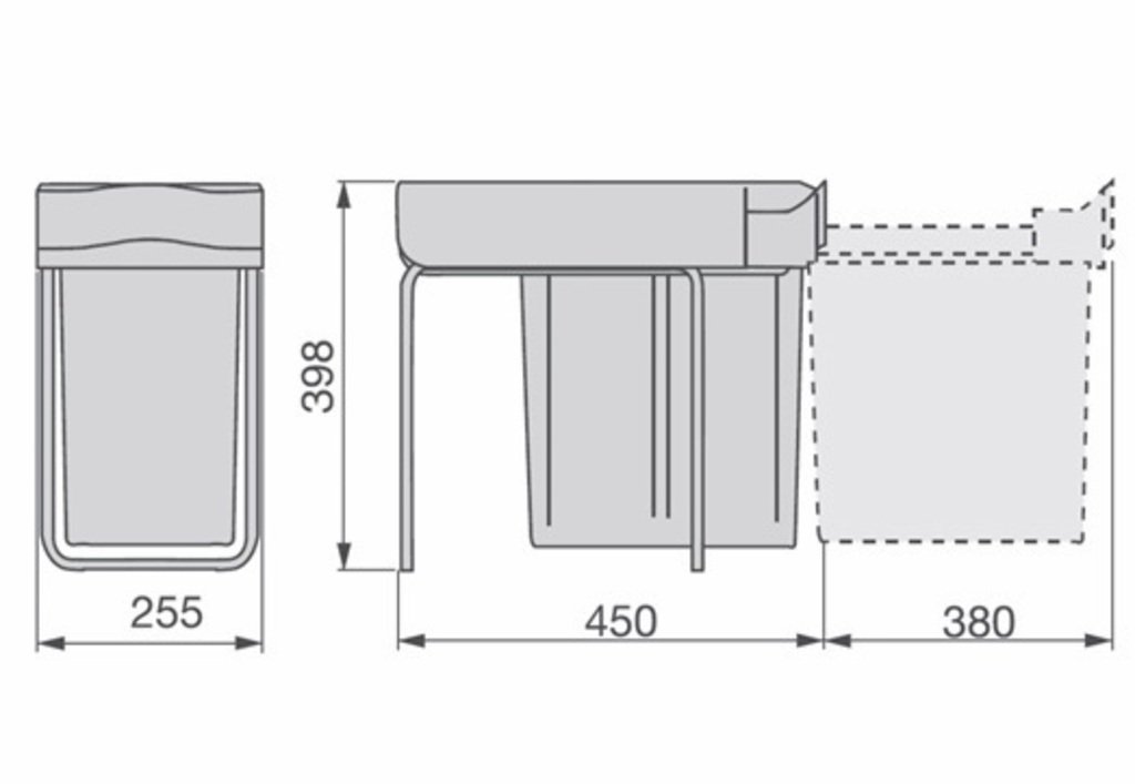 Výsuvný odpadkový koš, 1x20 l + miska, K30 - šedý plast