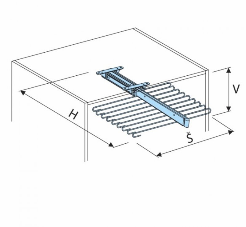 Výsuvný věšák na kalhoty - 11 ramen, 350x462x105 mm, chrom