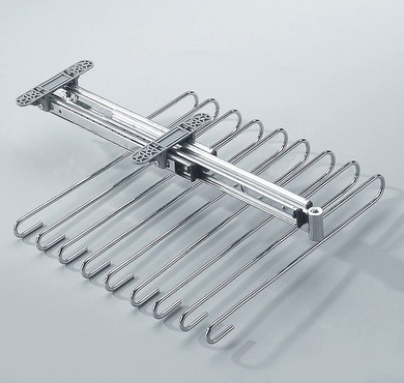 Výsuvný věšák na kalhoty Elegance - 9 ramen, 350x430x155 mm, chrom - hliník elox